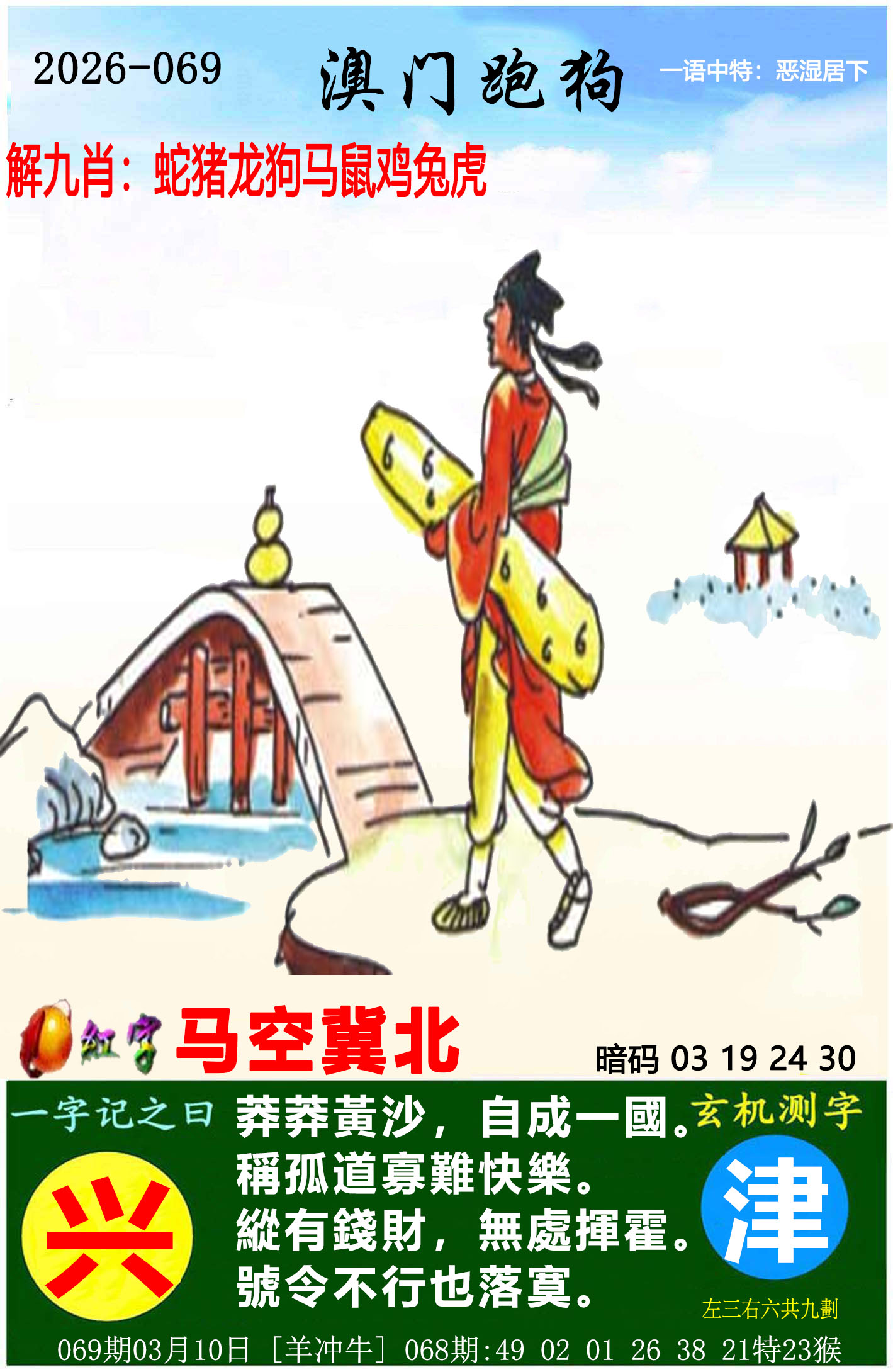069期开奖时间2026年03月10星期二)晚9:30开(农历正月廿二 羊冲牛)069期【欲钱买一马当先的生肖】